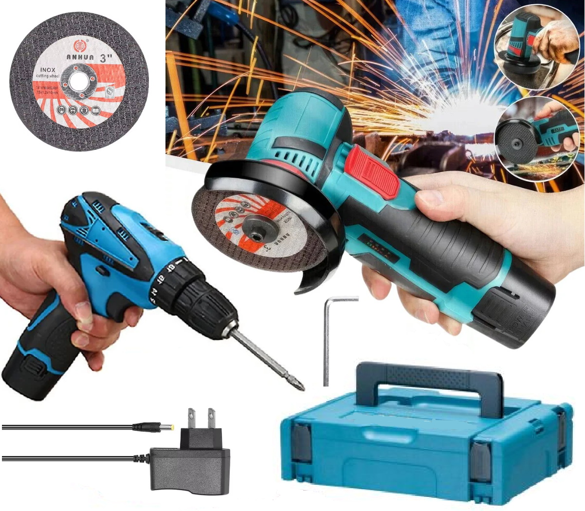 Σετ Γωνιακός Τροχός & Κρουστικό Δραπανοκατσάβιδο 12V με 2 Μπαταρίες & Βαλίτσα Μεταφοράς