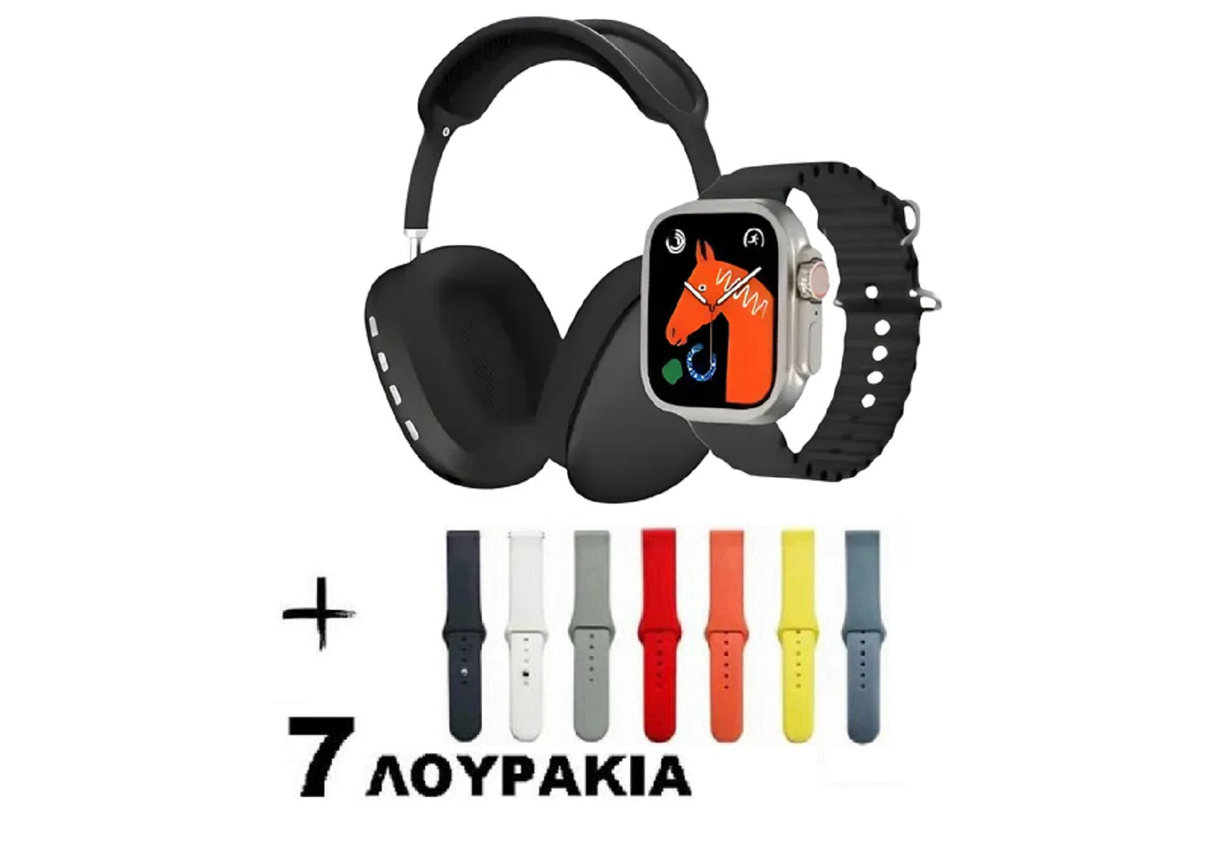 Smartwatch P9 Ultra Με Δώρο Ακουστικά + Φορτιστή + 7 Λουράκια