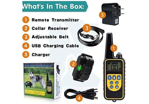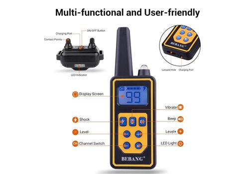 - Περπάτημα με το κατοικίδιό σας: είναι αδιάβροχο, ώστε το κατοικίδιο ζώο σας να μπορεί να κολυμπάει ή να περπατά στη βροχή μαζί του. Απομακρυσμένη απόσταση έως και 800 μέτρα, ώστε να μπορείτε να εκπαιδεύσετε εύκολα το κατοικίδιό σας όπου κι αν βρίσκεστε! Ο πομπός και το αδιάβροχο περιλαίμιο είναι επαναφορτιζόμενα.
