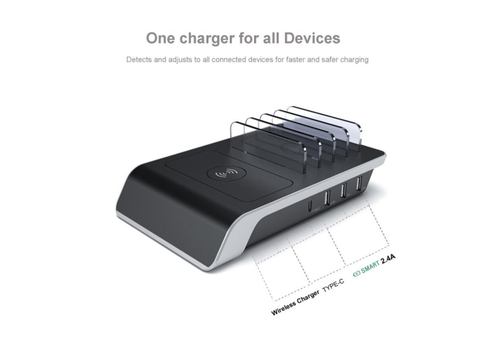 Φορτιστής επιτραπέζιος για έξι συσκευές με 4 ( 4x2.4A) θύρες φόρτισης εξοικονομώντας σας χώρο και κρατώντας τον χώρο σας τακτοποιημένο.