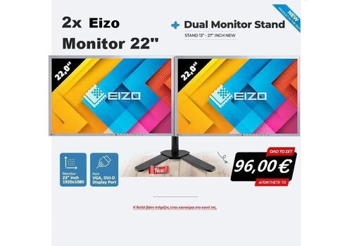 2 ΟΘΟΝΕΣ MONITOR 22'' EIZO EV2216W ΜΕ ΒΑΣΗ ΣΤΙΡΗΞΗΣ ΕΚΘΕΣΙΚΟ (Refurbished)